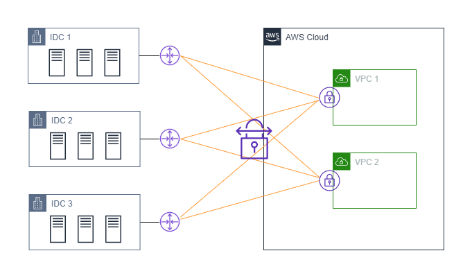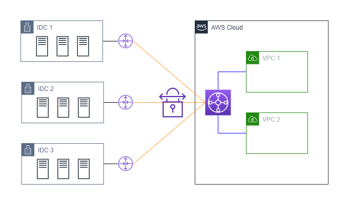 지금은 IDC와 VPC가 두세개씩 있으니까 별 차이가 없어보이지만, TGW가 없다면 엔드포인트가 늘어날수록 아키텍처는 거미줄처럼 복잡해질 것이다