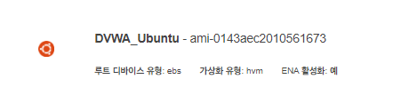 AWS 커뮤니티 AMI인 DVWA용 Ubuntu를 사용함