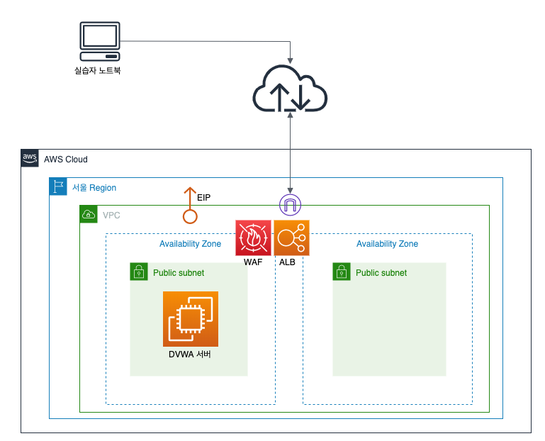 준비된 환경에 WAF까지 구현한 아키텍처는 다음과 같다