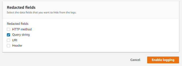 이번 실습에선 필요 없는 Query string을 체크해준 후 Enable logging을 눌러주자
