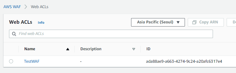 콘솔 > 서비스 > WAF > Create web ACL