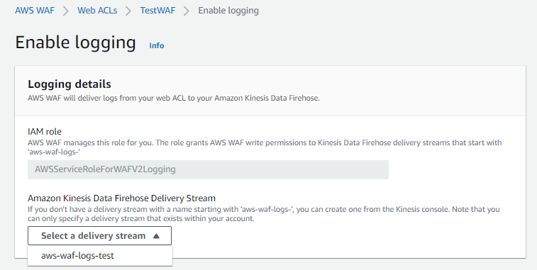 Enable logging을 눌러 Kinesis Firehose를 선택