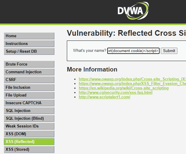 XSS (Reflected) 탭으로 가서
