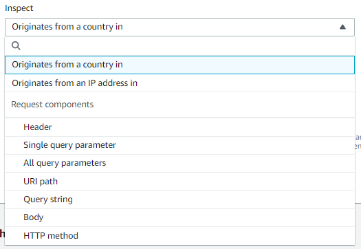 | Single query parameter | 쿼리 문자열의 일부로 정의한 모든 파라미터. WAF는 지정한 파라미터의 값을 검사함 Query argument도 정해줘야 함 |