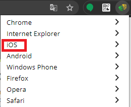 Browsec은 이제 끄고, User-Agent Switcher를 켜서 iOS > iPhone 6으로 설정해주자