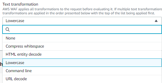 패턴 또는 집합 제약 조건을 찾는 문에서 요청을 검사하기 전에, WAF에서 적용할 변환을 제공할 수 있음