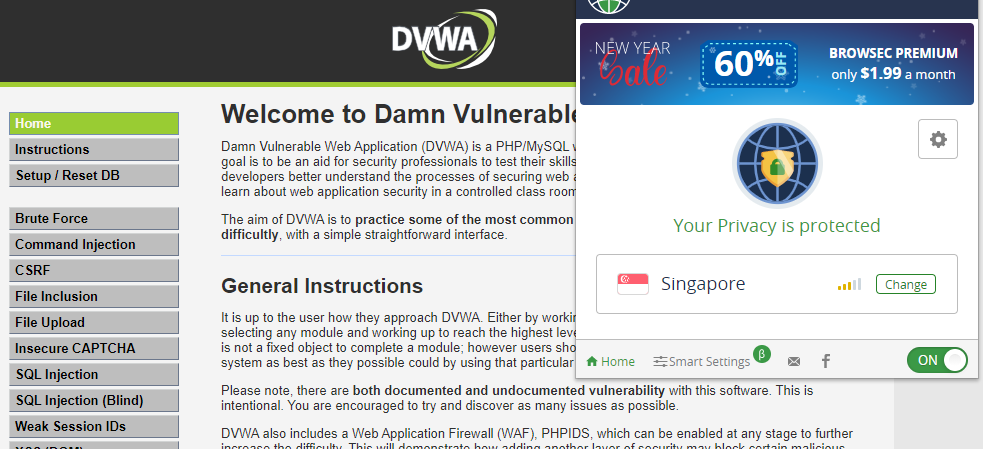 다시 싱가포르인 상태로 DVWA에 들어가보면
