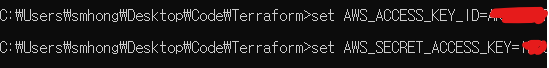 set AWS_SECRET_ACCESS_KEY=[본인 계정 시크릿 키]