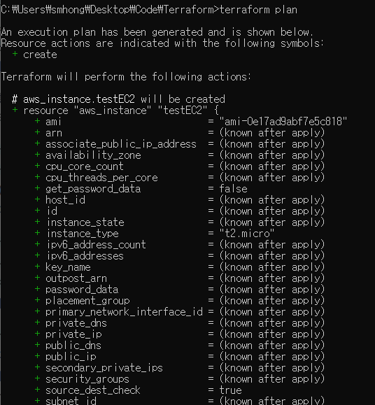 plan : 테라폼이 실행했을 시, 실제로 생성되거나 변경되는 내역을 보여준다