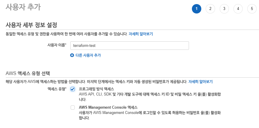 콘솔 > IAM > 사용자 > 사용자 추가