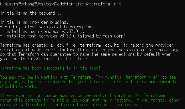 난 Terraform이란 폴더를 하나 만들어줬고 cmd에서 그 폴더 내로 이동한 후 진행하겠다
