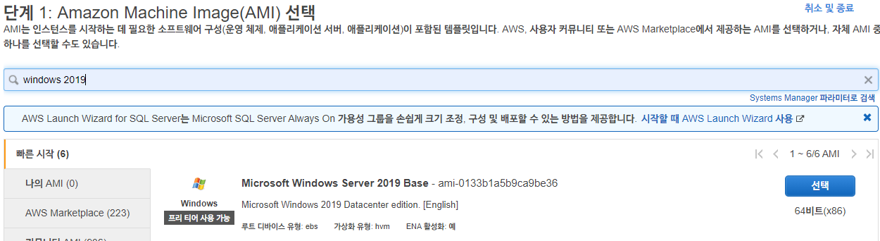 그리고 EC2는 Windows Server 2019 Base 로 만들어주자