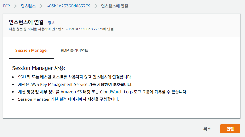 그래서 IAM 역할만 붙여주면 서버에서 별다른 설정 없이 바로 연결할 수 있다