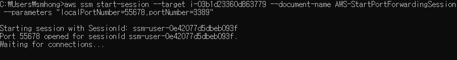AWS-StartPortForwardingSession 이란 문서를 통해 포트 포워딩 방식으로 3389에서의 트래픽을 원하는 로컬 포트로 리디렉션해주는 것이다