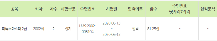 2차는 리눅스 운영 및 관리 48문항, 리눅스 활용 32문항 총 80문항이고 이 중 60점만 넘으면 된다