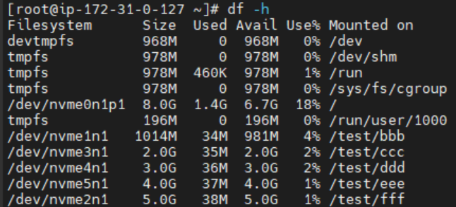 사이즈가 1~5G인 애들이 각각 bbb~fff 폴더에 마운트된걸 확인할 수 있다