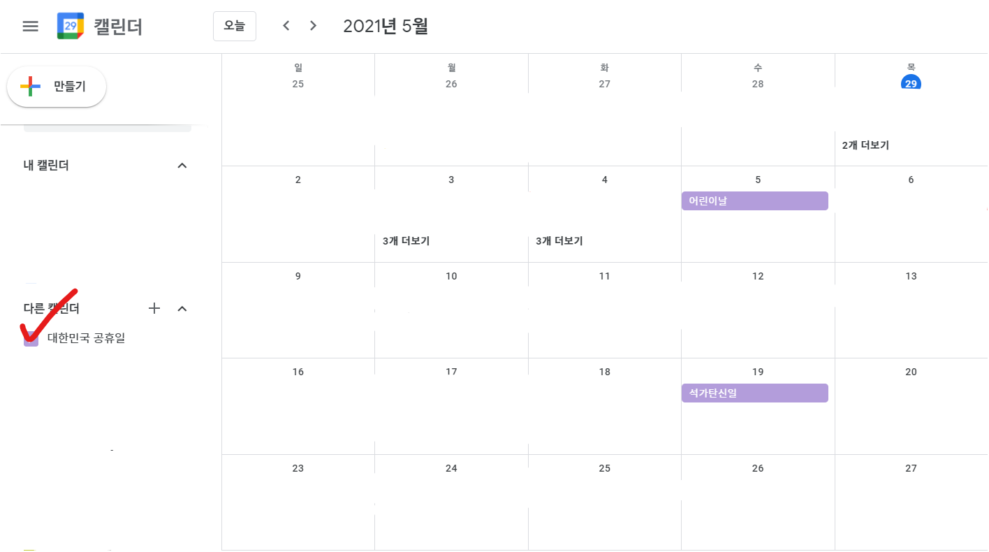 대한민국 공휴일 캘린더 사용이 가능하다