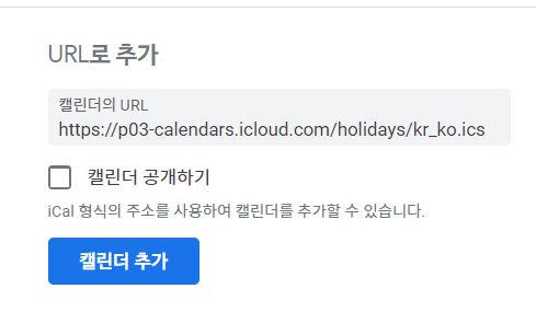 아래 url 입력 후 캘린더 추가