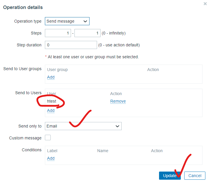 메시지 커스터마이징은 sarc.io/index.php/cloud/1311-tip-zabbix-action 이 글을 참고하자