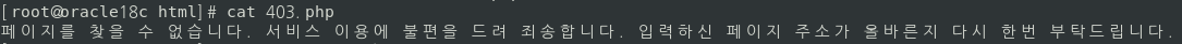 echo "페이지를 찾을 수 없습니다. 서비스 이용에 불편을 드려 죄송합니다. 입력하신 페이지 주소가 올바른지 다시 한번 부탁드립니다." > 403.php