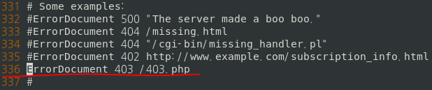336번째 줄에 ErrorDocument 403 /403.php 를 써준다