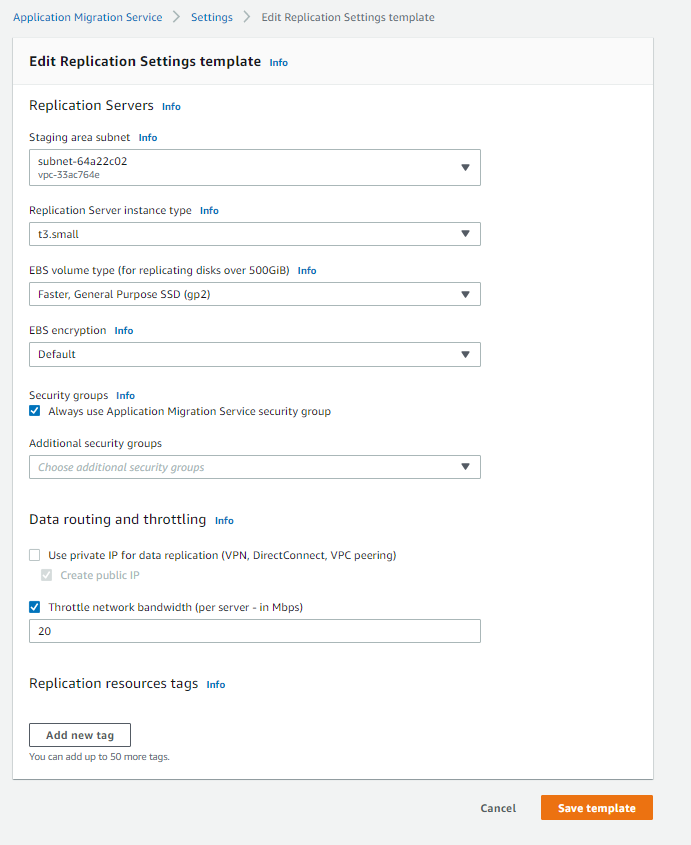 사실 Agent 설치를 하기 전에, MGN 콘솔에서 Template을 작성해줘야 한다