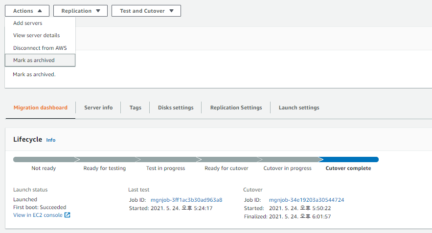 Mark as archived는 cutover를 마친 서버에서만 진행할 수 있다