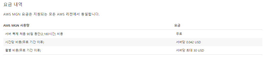 - MGN은 각 소스 서버별로 90일동안 무료 -> 90일 후엔 추가 비용