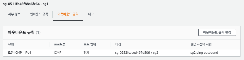 - sg1의 아웃바운드 규칙 - sg2로의 ICMP