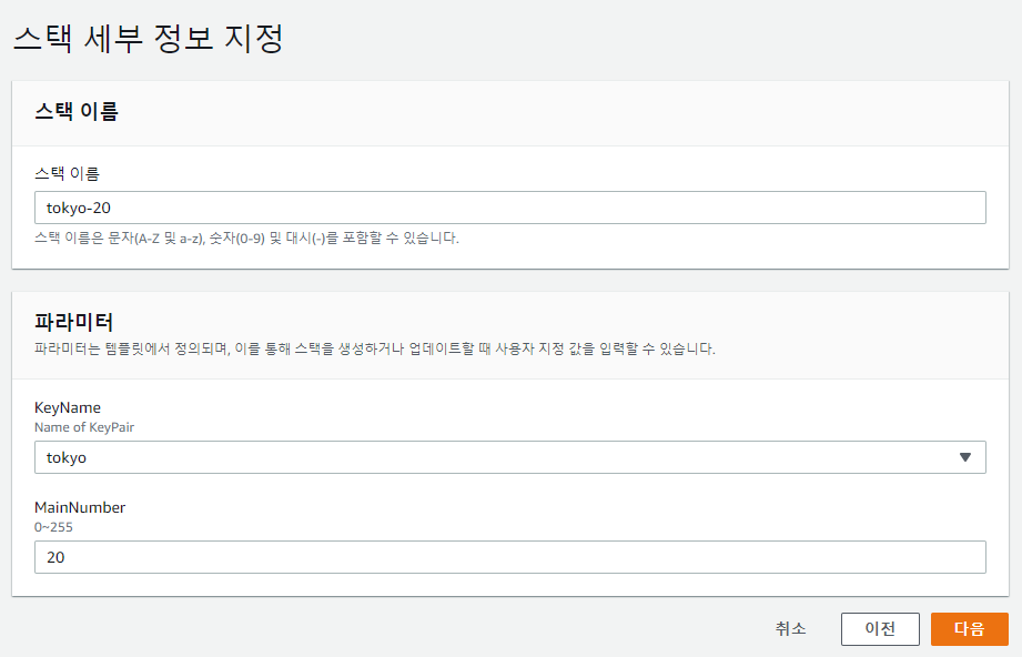 각 리전에서 스택 이름과 키, IP대역으로 쓸 Number를 지정해준다