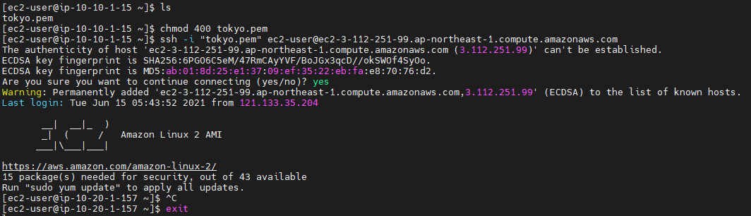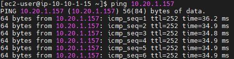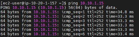 둘 중 아무 리전의 EC2에 먼저 접속을 한 후 나머지 리전으로의 Ping을 날려보도록 하겠다