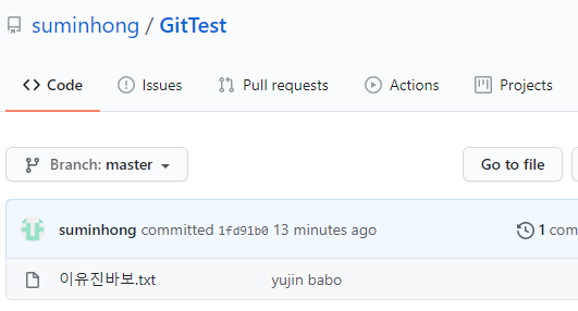 그럼 이번엔 원격 저장소에 바로 파일을 올려보고 워킹 디렉토리에서 확인해 보겠다