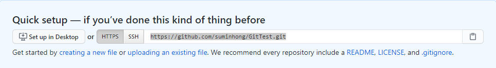내 워킹디렉토리의 원격저장소가 될 github 주소를 연결해준다(아까 복사한 URL)