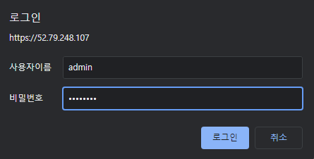 admin과 htdigest 명령으로 설정했던 비밀번호를 입력하고 로그인하자