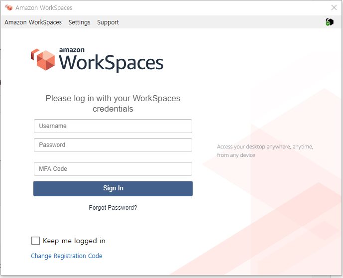 MFA Code까지 입력하고 나니 WorkSpaces에 접속도 잘 된다
