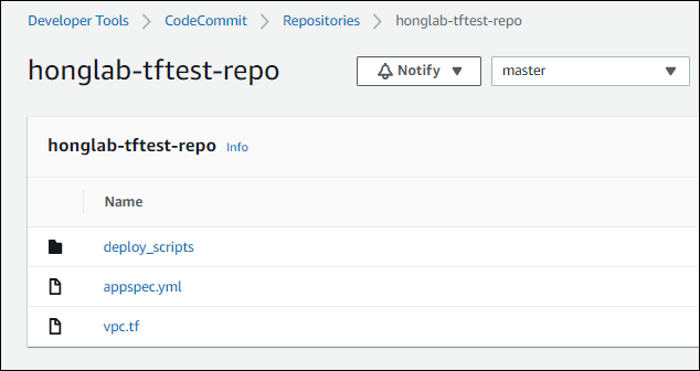아무튼 honglab-tftest-repo 란 Repository를 만들었고, 여기에 아래 파일들을 올려두었다