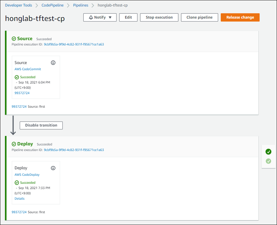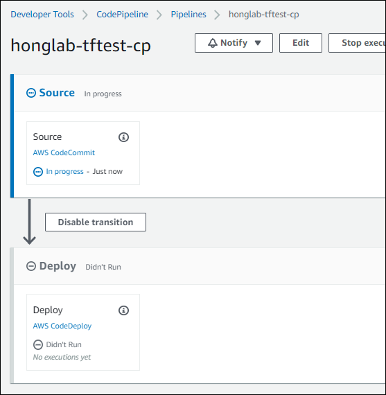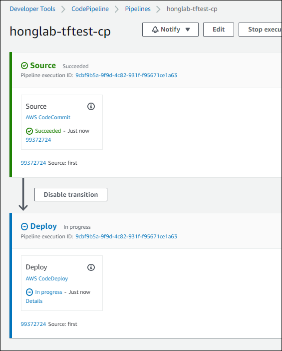 조금 기다리다 보면 Source -> Deploy 순으로 진행되는 상황을 볼 수 있다