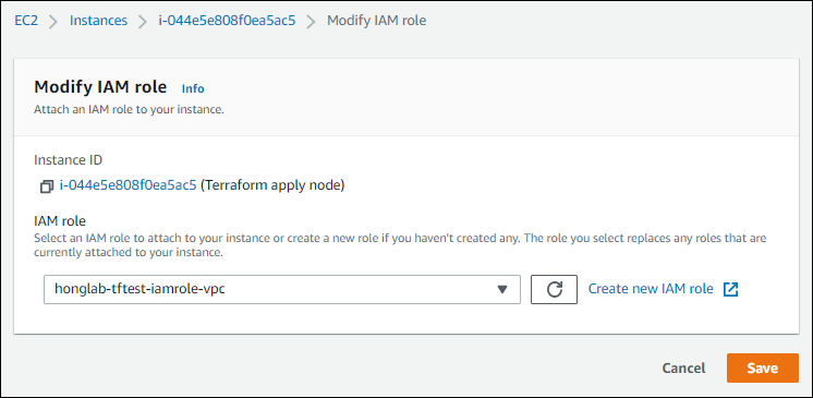 EC2 > Actions > Security > Modify IAM Role 에서 해당 Role을 붙여주자