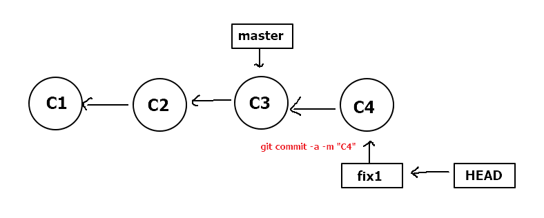 여기서 오류를 다 수정한 후 커밋을 수행하면 fix1과 HEAD는 방금 커밋한 객체를 가리킨다