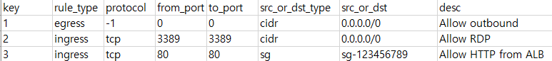 실제론 여러개의 보안그룹을 각각의 csv 파일로 관리하기 위해 모듈의 모듈 형식으로 구현해서 사용 중이다