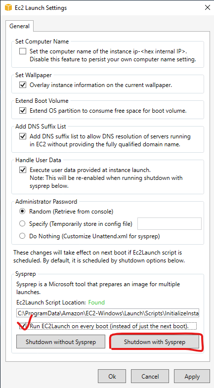 Shutdown with Sysprep 이후 AMI를 뜨면 새 키를 지정하는 대로 해당 서버를 시작할 수 있다