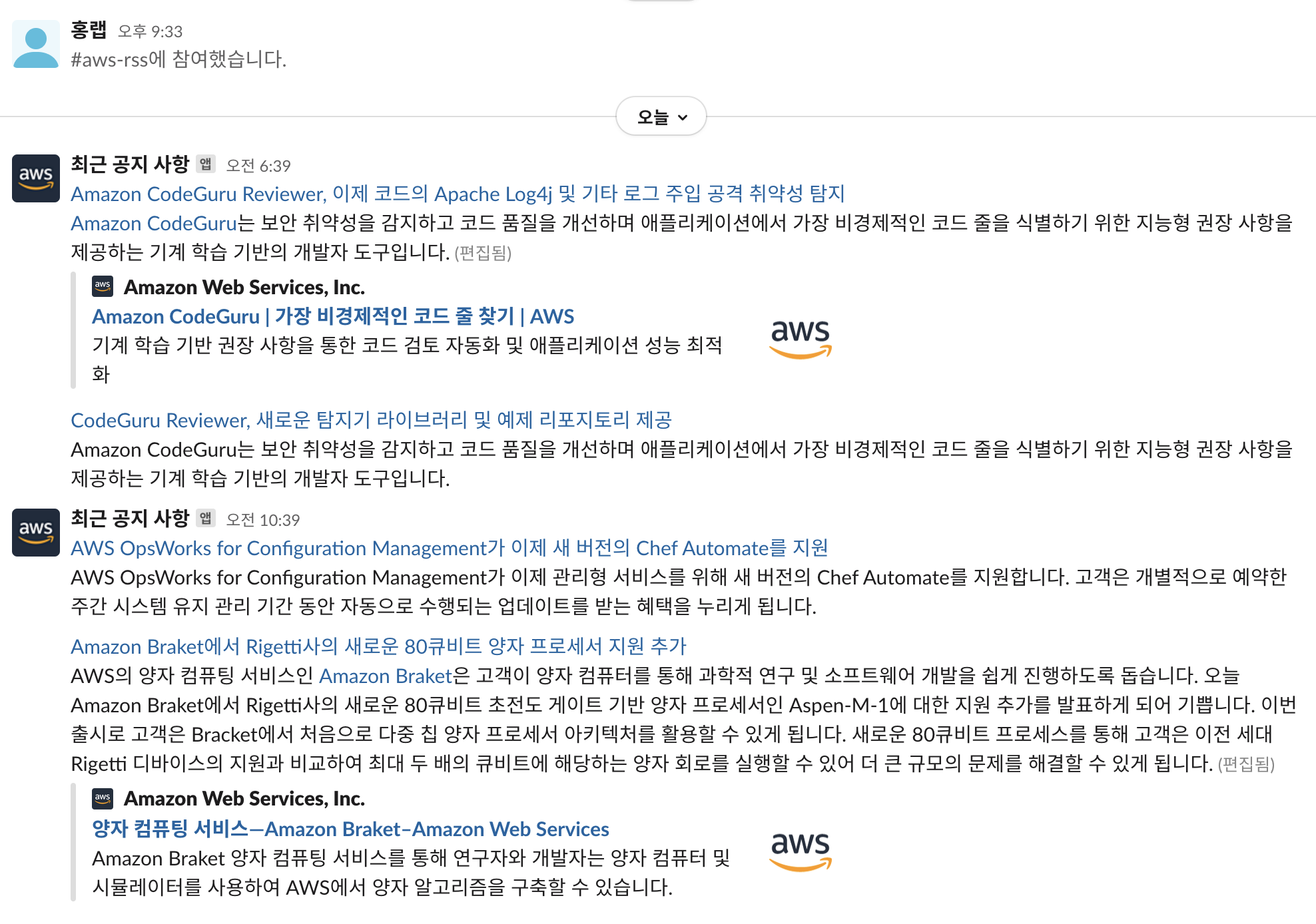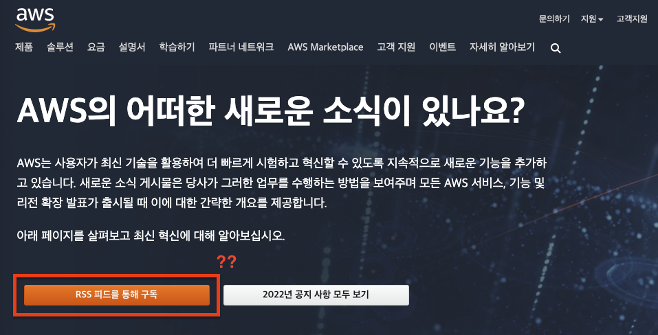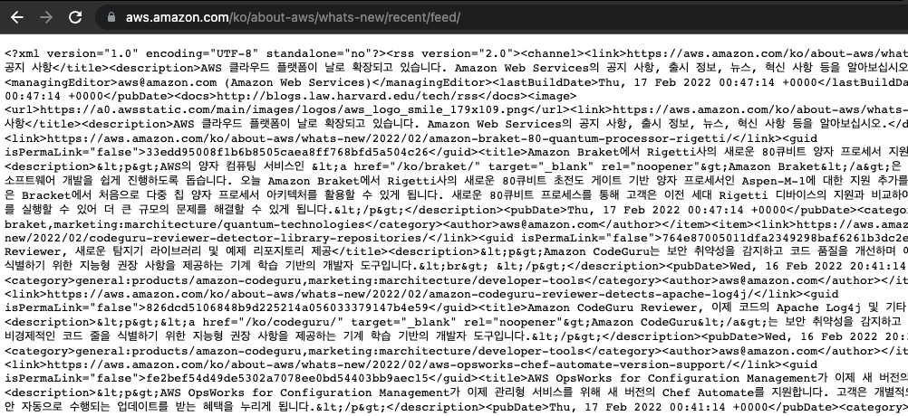 AWS 최신 뉴스 RSS : https://aws.amazon.com/ko/about-aws/whats-new/recent/feed/