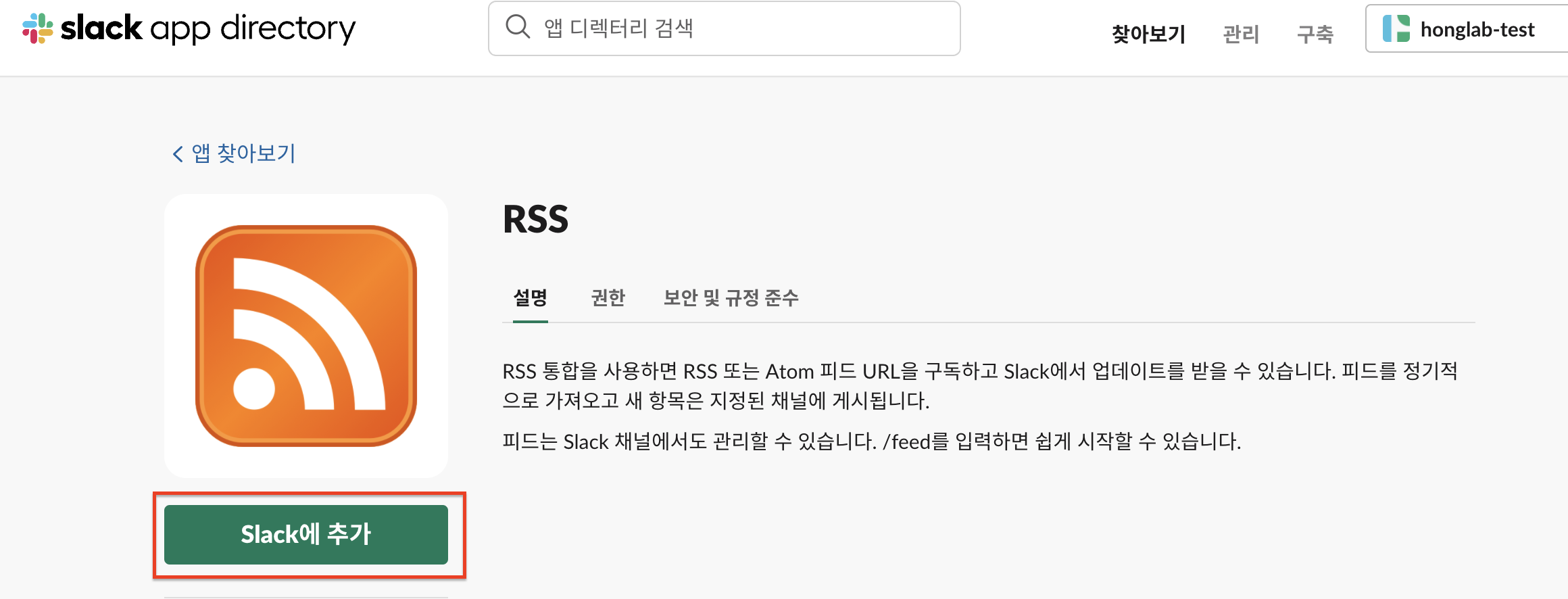 Slack에 RSS 피드 추가