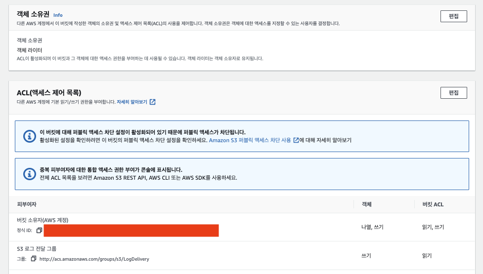 만약 ACL 수정이 불가하다면 위의 객체 소유권을 수정해줘야 한다