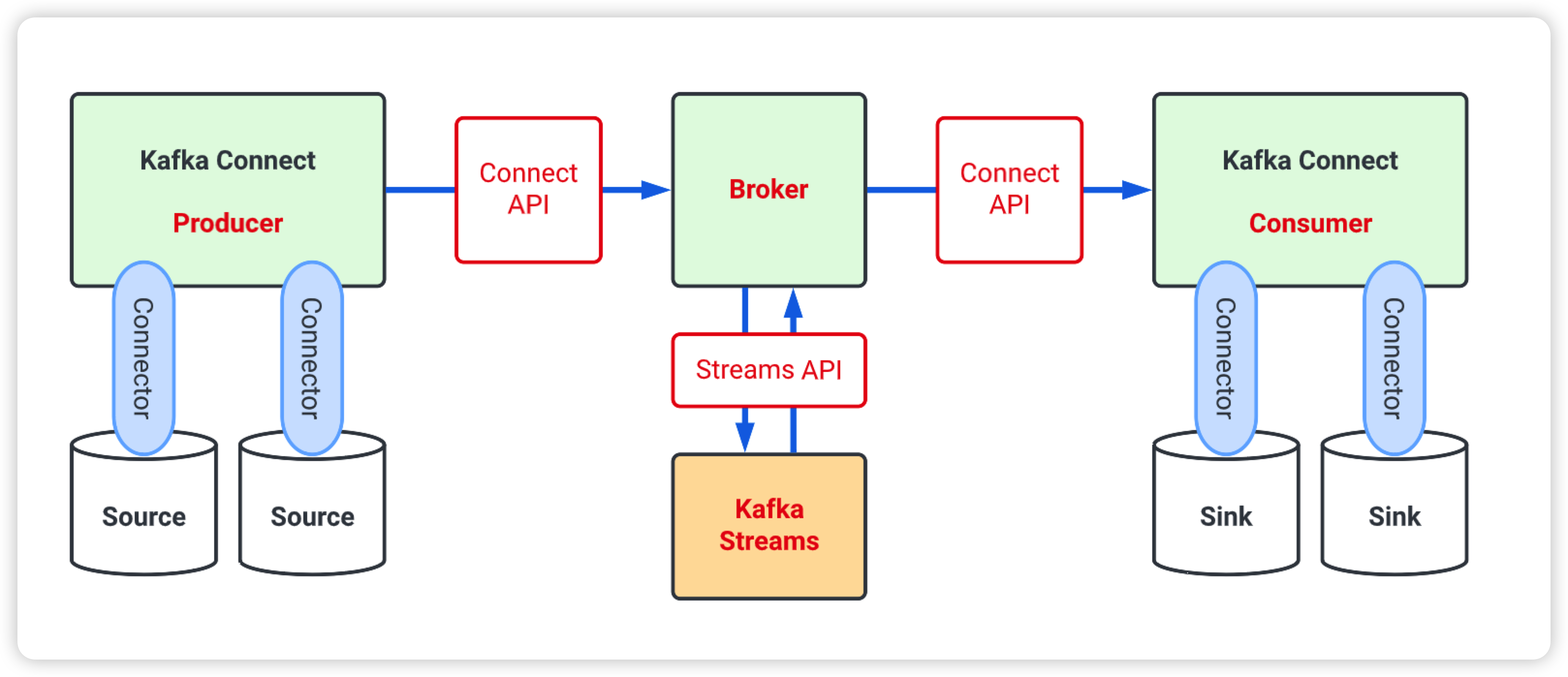- Producer, Consumer에 쉽게 접속할 수 있도록 Connect API 제공