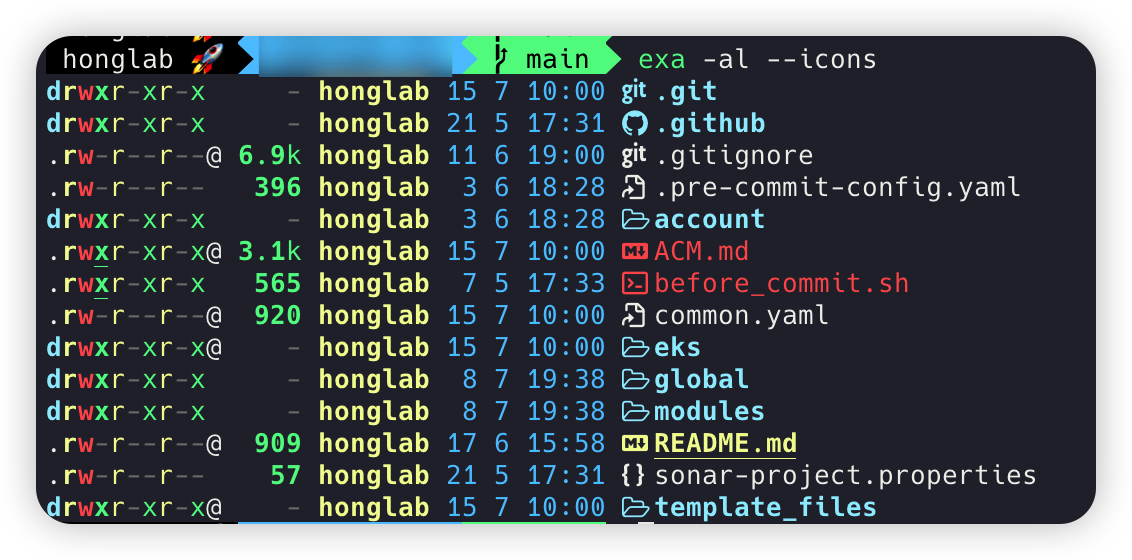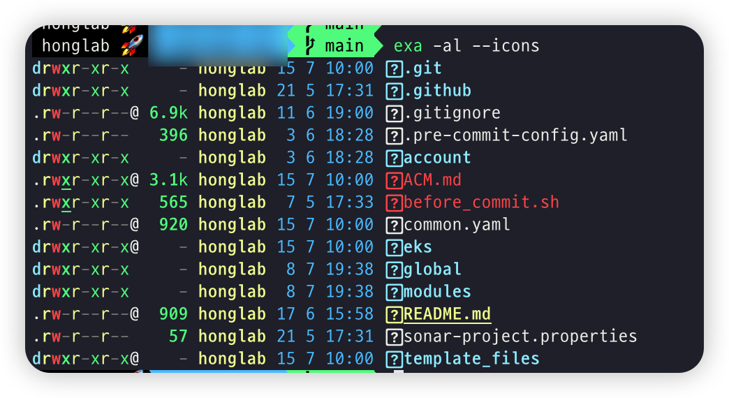 ls의 최신판이며, 색상/아이콘 표시 등의 기능 뿐 아니라 git도 통합되고 속도도 빠르다고 한다.