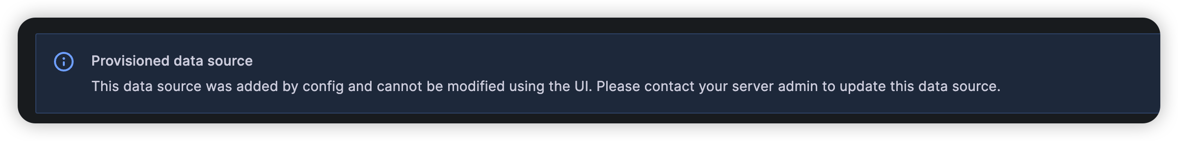-> 콘솔 작업이 아닌, Config를 통해 Provisioning된 Data Source. (Contact Point도 마찬가지)