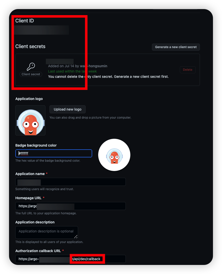 - Authotization callback URL : Airflow 도메인 +