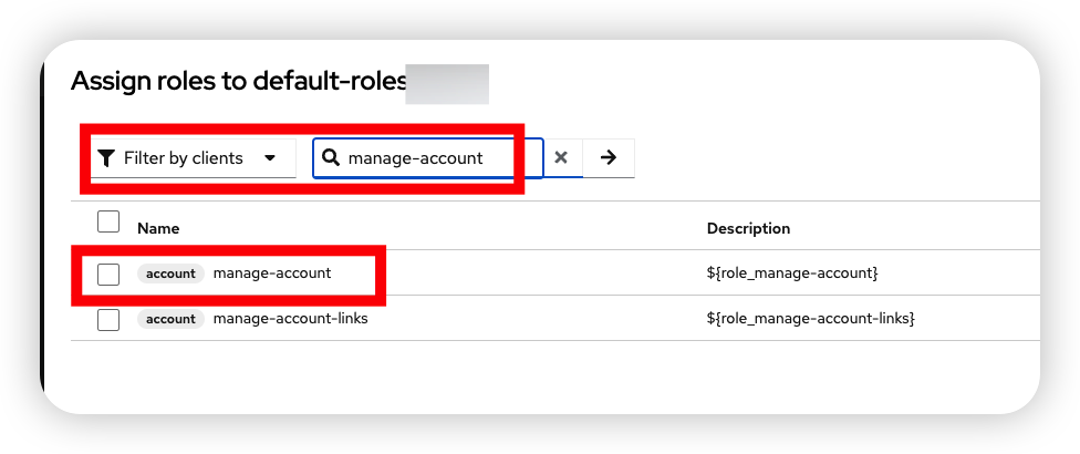 Filter by clients > manage-account 선택 및 assign