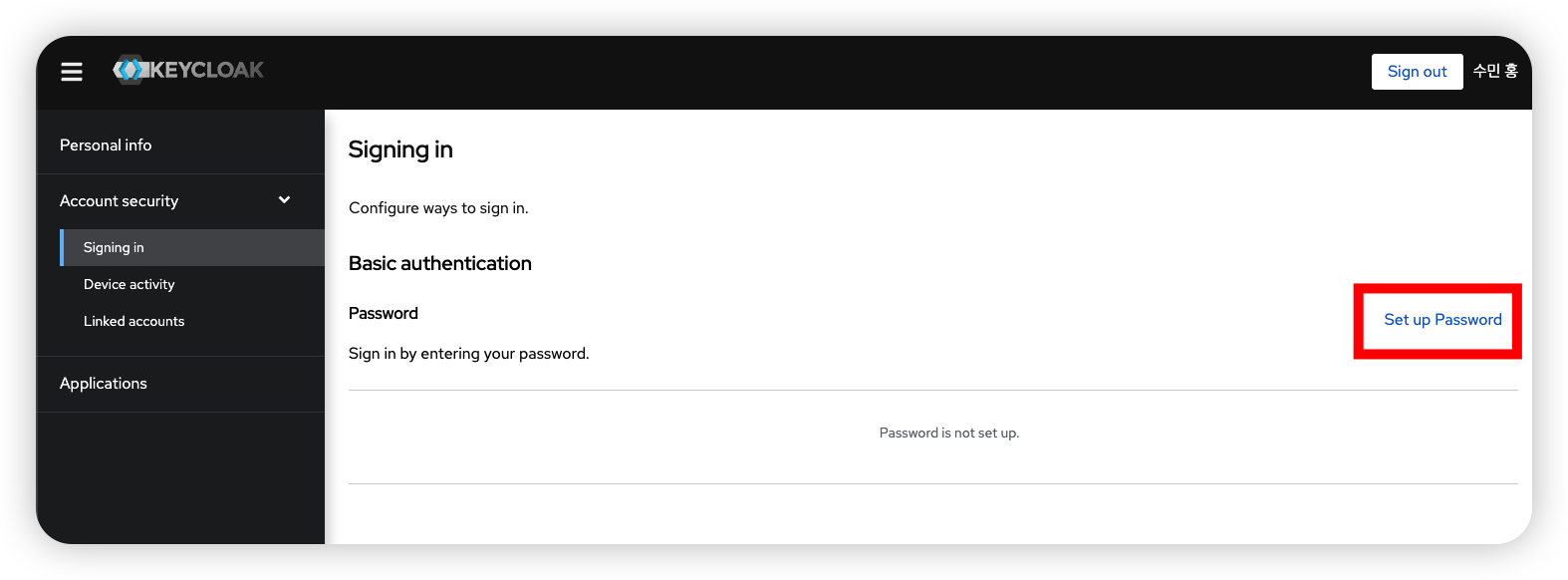 -> account client의 manage-account Role을 부여해야 한다.